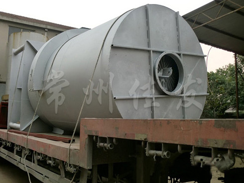該爐集燃燒與換熱為一體,以爐體高溫部位進行換熱的間接加熱技術(shù)。采取了耐高溫措施,從而使其壽命比管式熱風爐大大提高,輸出熱風溫度可達300℃以上,同時采用了煙氣逆向刷新?lián)Q熱片和負壓吸式排煙方式,換熱部位不積灰、無須清理,熱性能穩(wěn)定??墒褂酶鞣N煤或木柴做燃料,并配有二次進風裝置,燃燒完全。各項技術(shù)指標均達國內(nèi)水平。