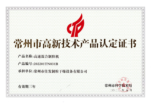 高新技術(shù)產(chǎn)品認定證書